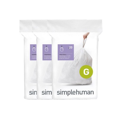 simplehuman 30L Code G Custom Fit Kitchen Trash Bag Liners 3 Quick-Dispense Packs - 60ct: Tall Kitchen, Drawstring, White