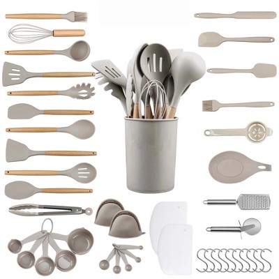 Silicone Kitchenware Set, 43-Piece Non-Stick Cooking Utensils Kitchen Set, Non-Stick 230°C Heat-Resistant Cookware (Khaki)