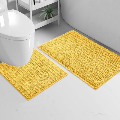 Home Mart Goods 2 Piece Set Lemon Yellow Soft Cozy Plush Chenille Bath Mat Bathroom Rug