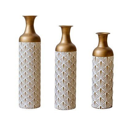 MAYEERTY Floor Metal Vase Modern Style Decoration Home Droplet Shaped White 3 Piece Set Large Glazed Metal Vase