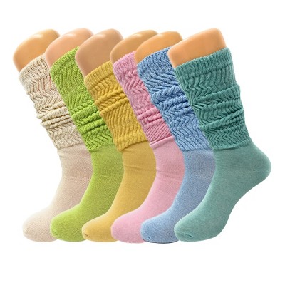 Women’s Slouch Socks 6 Pairs Cotton Scrunch Knee-High Shoe Size 5-10