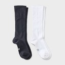 Wellfit 2 Pair Women's Knee High Compression Socks - Hearts Print/Solid Color White-Gray 9-11