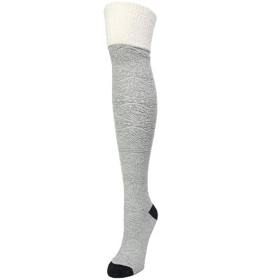 Memoi Costelle Pindot Fuzzy Cuff Cotton Blend Crew Socks