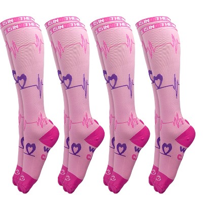 Bison Life Over The Calf Graduated Compression Socks for Women, Anti-Fatigue - 4 Pairs