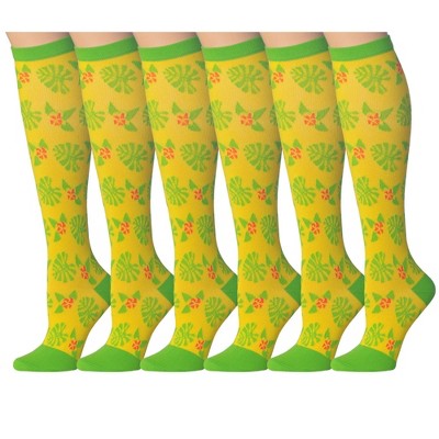 Tipi Toe 3 Pairs Compression Socks for Men & Women Nature Harmony Leafy Motif Colorful Patterned Knee High Socks (12-14 mmHg)