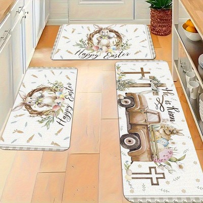Lomsoe 3pcs Easter Pattern Flannel Carpet, suitable for bedroom, living room, dining room, kitchen, bathroom, and entry-Flannel floor mats.