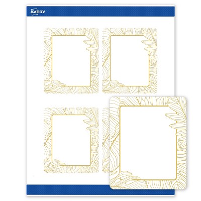 Avery Rectangle Labels, Gold Florals, 4" x 3-1/3", Matte, Gold Monstera Leaves