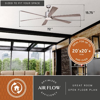 AMERLIFE Ceiling Fan with Light, 8-Blade Large Fan, Remote Control, 6-Speed DC Motor, 3-Color LED, for Indoor/Outdoor Use