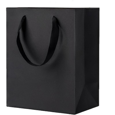 Aoibox Medium Black Gift Bags 6 Pack 8x5x10 Inch Matte Kraft Paper Ribbon Handles Reusable for Wedding Birthday Party Business