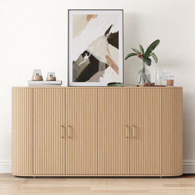 Sideboard Buffet Cabinet - Credenza Storage with 2 Rattan doors and Shelves, Modern Console Table Accent Coffee Bar Cabinet for Living Room, Hallway