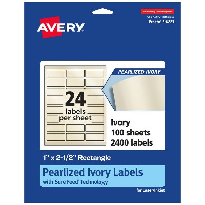 Avery Pearlized Ivory Rectangle Labels with Sure Feed Technology, 1" x 2.5"