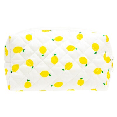 Narwey Vintage Quilted Makeup Bag Cosmetic Pouch for Brushes Pencils and Travel Make Up Accessories for Women and Girls Lemon White