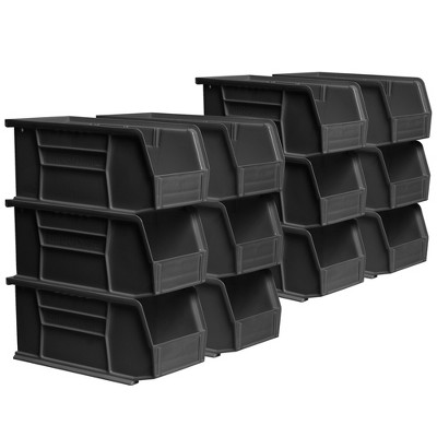 Akro-Mils 12 Pack AkroBins Plastic Storage Bins, Space-Saving Organizers, Black