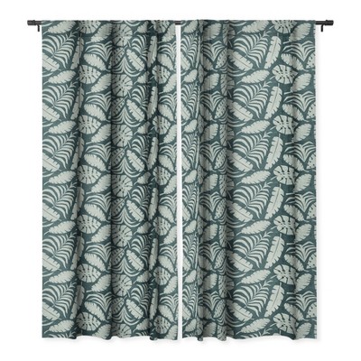 Little Arrow Design Co tropical leaves teal Set of 2 Panel Blackout Window Curtain - Deny Designs