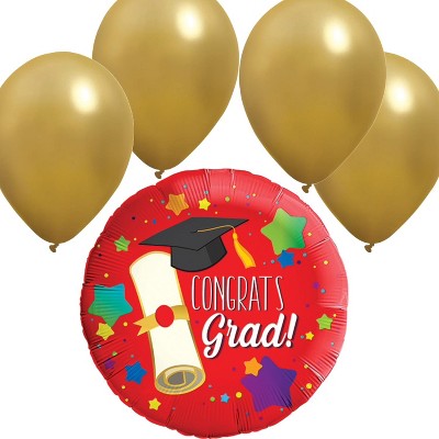 LoonBalloon Graduation Stars & Dots Balloon Standard Size Premium Foil Graduation Theme Balloon Set with 4 pcs Latex