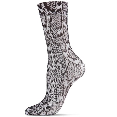 Memoi Women's Faux Snakeskin Print Fishnet Textured Crew Sock Black One Size