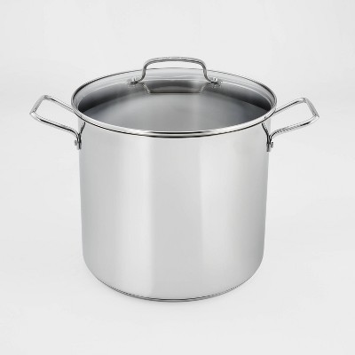 Cuisinart 16qt Stainless Steel Stock Pot with Cover Silver: Dishwasher & Oven-Safe, Tempered Glass Lid, Riveted Handle