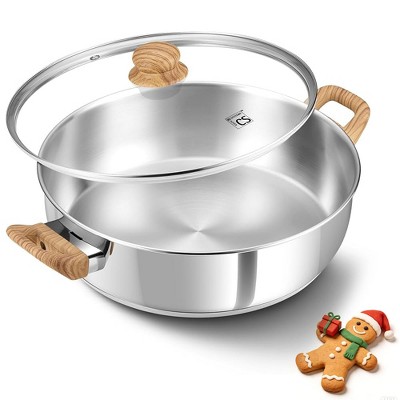 KOCH SYSTEME CS 12 Inch Stainless Steel Deep Frying Pan with Double Bakelite Handles, Saute Pan with Lid, Induction Ready