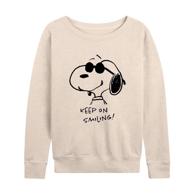 Women's - Peanuts - Cool Joe Keep On Smiling Lightweight French Terry Wide Neck Long Sleeve Graphic Shirt