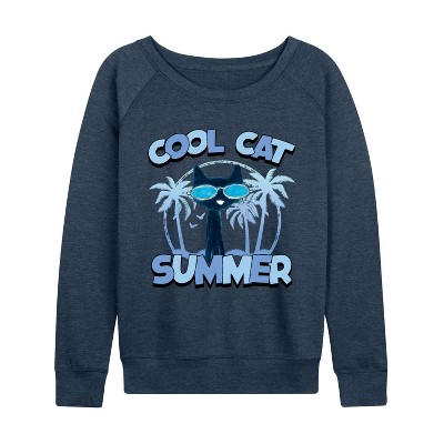Women's - Pete the Cat - Cool Cat Summer Lightweight French Terry Wide Neck Long Sleeve Graphic Shirt
