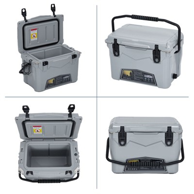 25QT Portable Hard Cooler with Bottle Opener, Cup Holder and Ruler, 5 to 7 Day Ice Retention for Beach, Camping, Fishing and Travel(Gray)