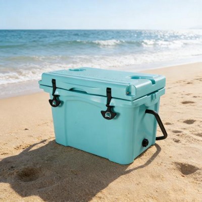 25QT Portable Hard Cooler with Bottle Opener, Cup Holder and Ruler, 5 to 7 Day Ice Retention for Beach, Camping, Fishing and Travel(Turquoise)
