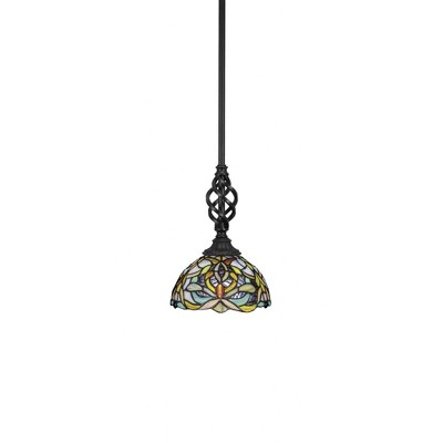 Toltec Lighting Elegante 1 - Light Pendant in Matte Black with 7" Kaleidoscope Art Glass Shade