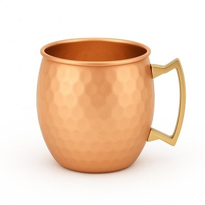 Modern Home Handmade 16oz Solid Copper Mule Mug – Barrel Shaped Mug with Copper Handle & Hammered Texture (Single)