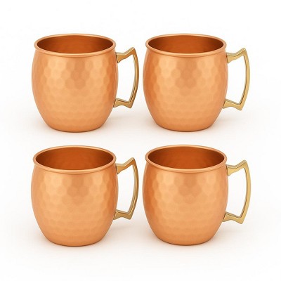 Modern Home Handmade 16oz Solid Copper Mule Mug – Barrel Shaped Mug with Brass Handle & Smooth Texture (Set of 4)
