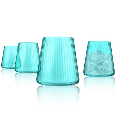 American Atelier Vintage Art Deco 11 oz. Fluted Drinking Glasses Set of 4, Unique Cups for Weddings, Cocktails or Bar, Ribbed Glass Cup, Amber