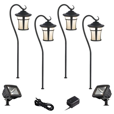 John Timberland Concord 18" High Country 6-Piece Complete Outdoor Landscape Lighting Set Porch House LED Bulb Dusk To Dawn Black Metal Glass Shade