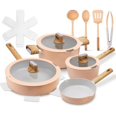 7pc Nonstick Ceramic Coated Aluminum Cookware Set with Champagne Handles - Figmint™