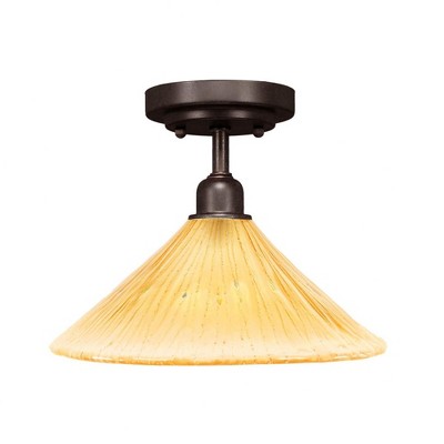 Toltec Lighting Vintage 1 - Light Flush Mount in Dark Granite with 12" Amber Crystal Shade