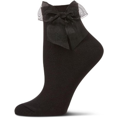 Memoi Women's Cotton Rich Tulle Bow Trimmed Ankle Sock