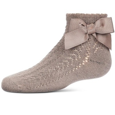 Memoi Girls Silky-Sheer Micro-Mesh Ankle Sock with Satin Bow