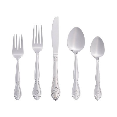 RiverRidge Rose Flatware 46pc Monogrammed Stainless Steel Silverware Set for 8