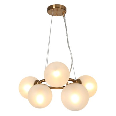 LNC Marilobutia 5-Lights 20" Modern Sputnik Medium Chandelier, Polished Gold with Milk White Glass