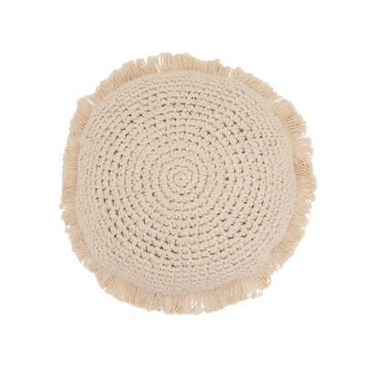 Saro Lifestyle Round Fringe Poly Filled Throw Pillow, 18", Natural