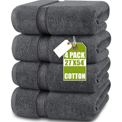 4 Pack Bath Towels, 27x54, 100 Ring Spun Cotton, Ultra Soft, Light Grey