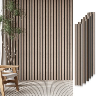 SMARTSTANDARD 94.09 in. x 7.87 in. x 0.9 in. Slat Wood Acoustic Sound Absorbing 3D Decorative Wall Paneling, 6-Pack
