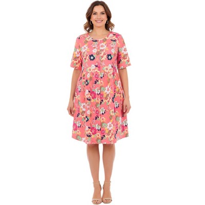 Women's Plus Size Square Neck Short Sleeve Floral Dress -White Mark