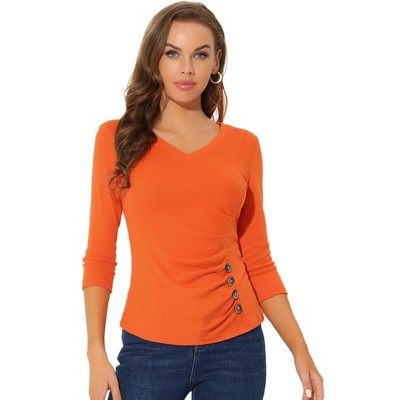 Coolmee Women's Plaid Shirts Long Sleeve Turn-Down Collar Button Down Tops Ruched Waisted Pleated Blouses with Pockets S Orange