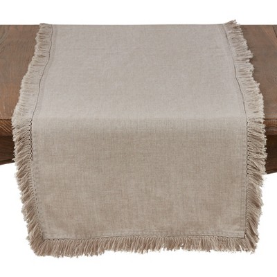 72"x16" Linen Stonewashed Fringe Table Runner Natural - Saro Lifestyle: Machine Washable, Non-Woven Fabric, Rectangular Shape
