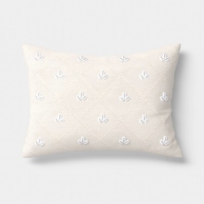 14"x20" Oversize Ivory Lumbar Pillow with Geometric Embroidery - Rizzy Home: Indoor Canvas Decor