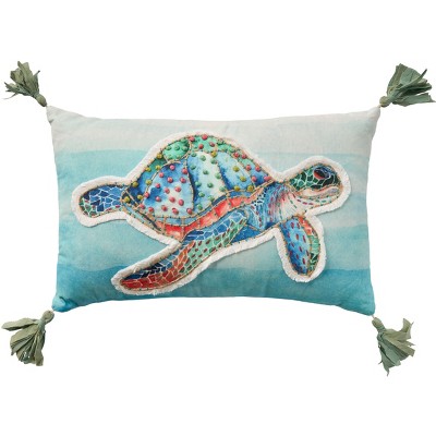 Mina Victory Coastal Accessories Embellished Turtle 13" x 21" Multicolor Throw Pillow