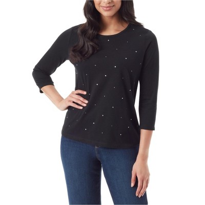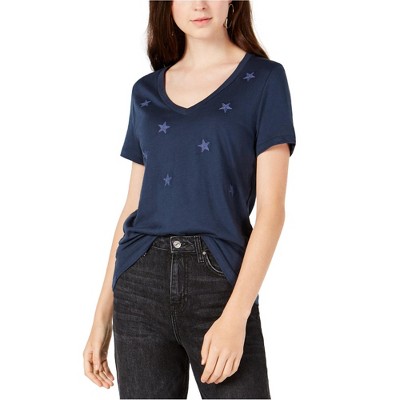 Carbon Copy Womens Embroidered Stars Embellished T-Shirt