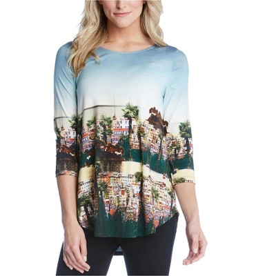 Karen Kane Womens Scenic Print High Low Hem Basic T-Shirt