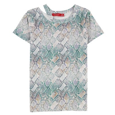 Carbon Copy Womens Striped Patch Embellished T-Shirt