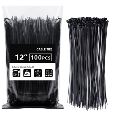 Etokfoks 100-Pack Black Zip Ties 12" Heavy Duty 40lb Tensile Strength Self-Locking Nylon Cable Ties for Indoor and Outdoor Wire Management