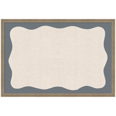 Kate and Laurel Framed Fabric Pinboard Wavy Linen and Smokey Blue Wall Organization, 38x26, Florence Light Brown